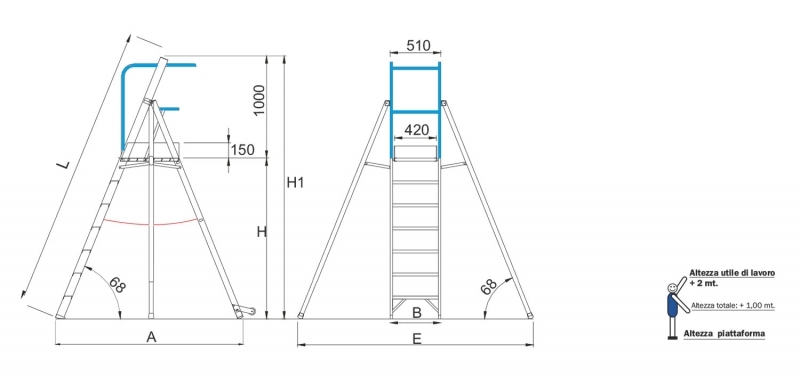 Adjustable outriggers keep the ladder perfectly stable and comply with the anti-tilting tests required by the specific European standard for work platform ladders,