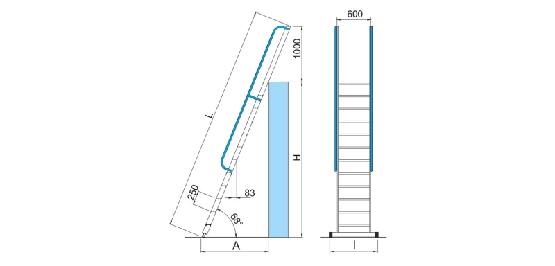 This ladder has been specially designed for accessing lofts or raised floors and has a proper frontal exit point with safety rail.