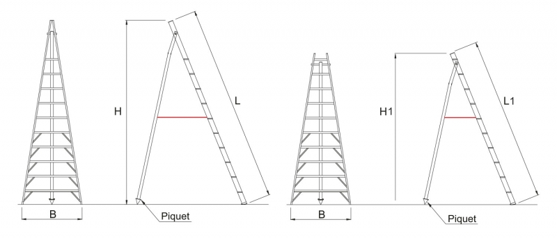 The ladder can be supplied with an end tip enabling it to be wedged between branches, or with a sheared-off tip, which reduces its size, makes it easier to transport and forms a convenient support for the cutting tools.