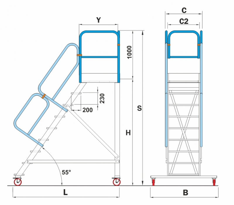 Une échelle à estrade très solide et fiable, avec un support vertical, elle permet de s'approcher le plus possible à la surface de travail et d'opérer aussi sur le côté frontal, elle est particulièrement indiquée pour accéder facilement à des rayonnages d'entrepôts industriels.