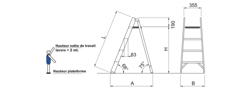 - Marche antidérapante profondeur mm 83 unie au montant par une soudure solide à angle cachée