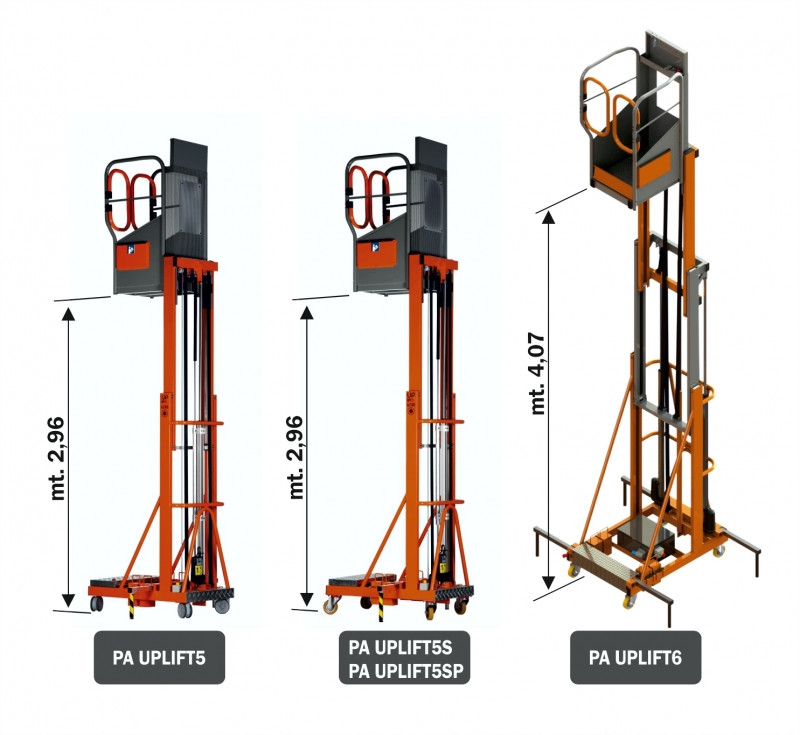 - Elevazione tramite fasce di carico con cilindro telescopico (senza impianto idraulico)