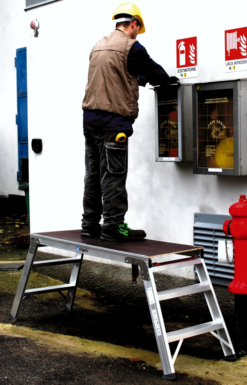 Piattaforma pieghevole con telaio in alluminio e superficie in legno trattato in resina impermeabile e anti-macchia con anti-scivolo a rilievo efficace anche in presenza di acqua