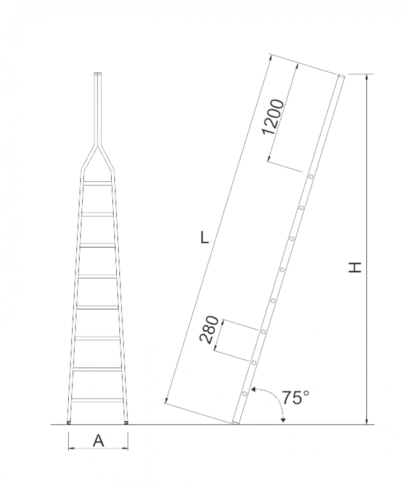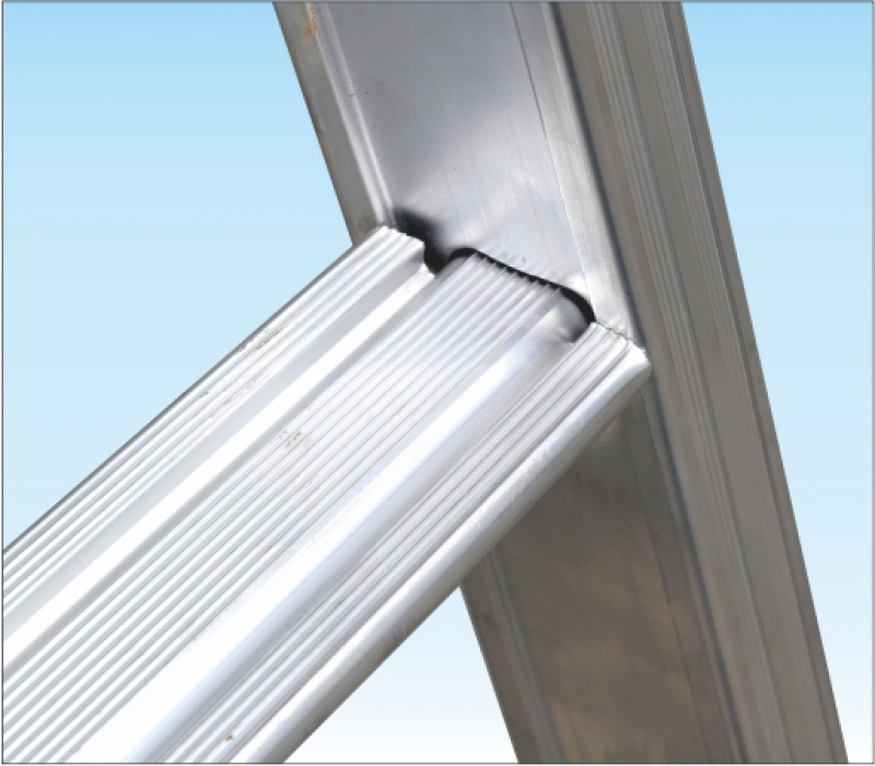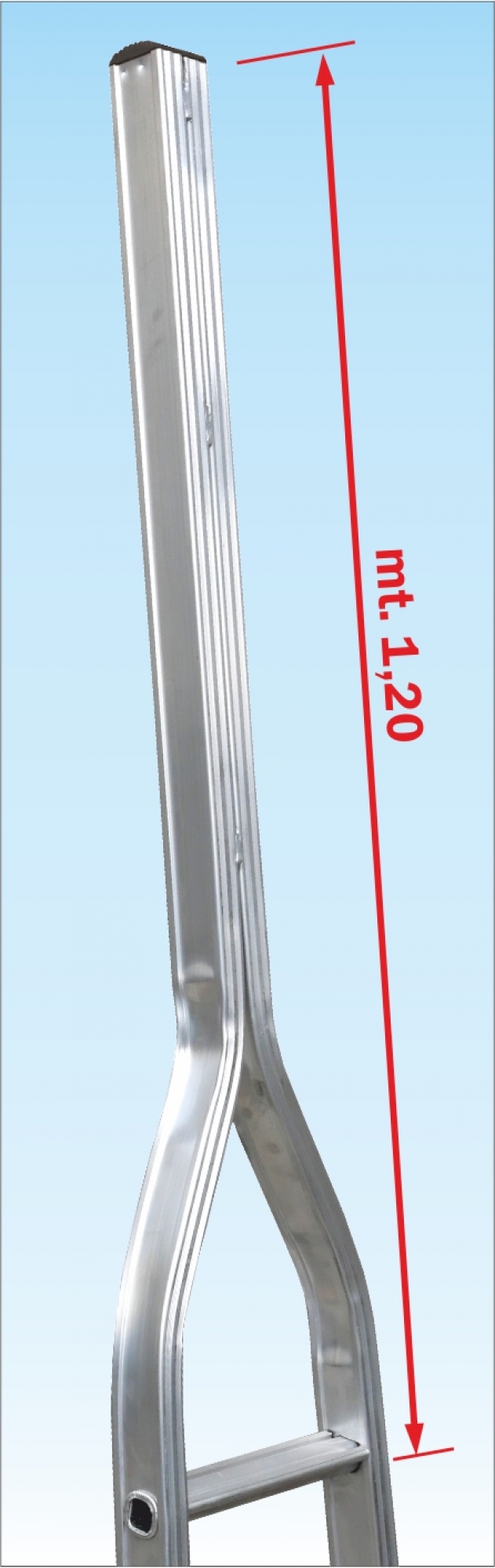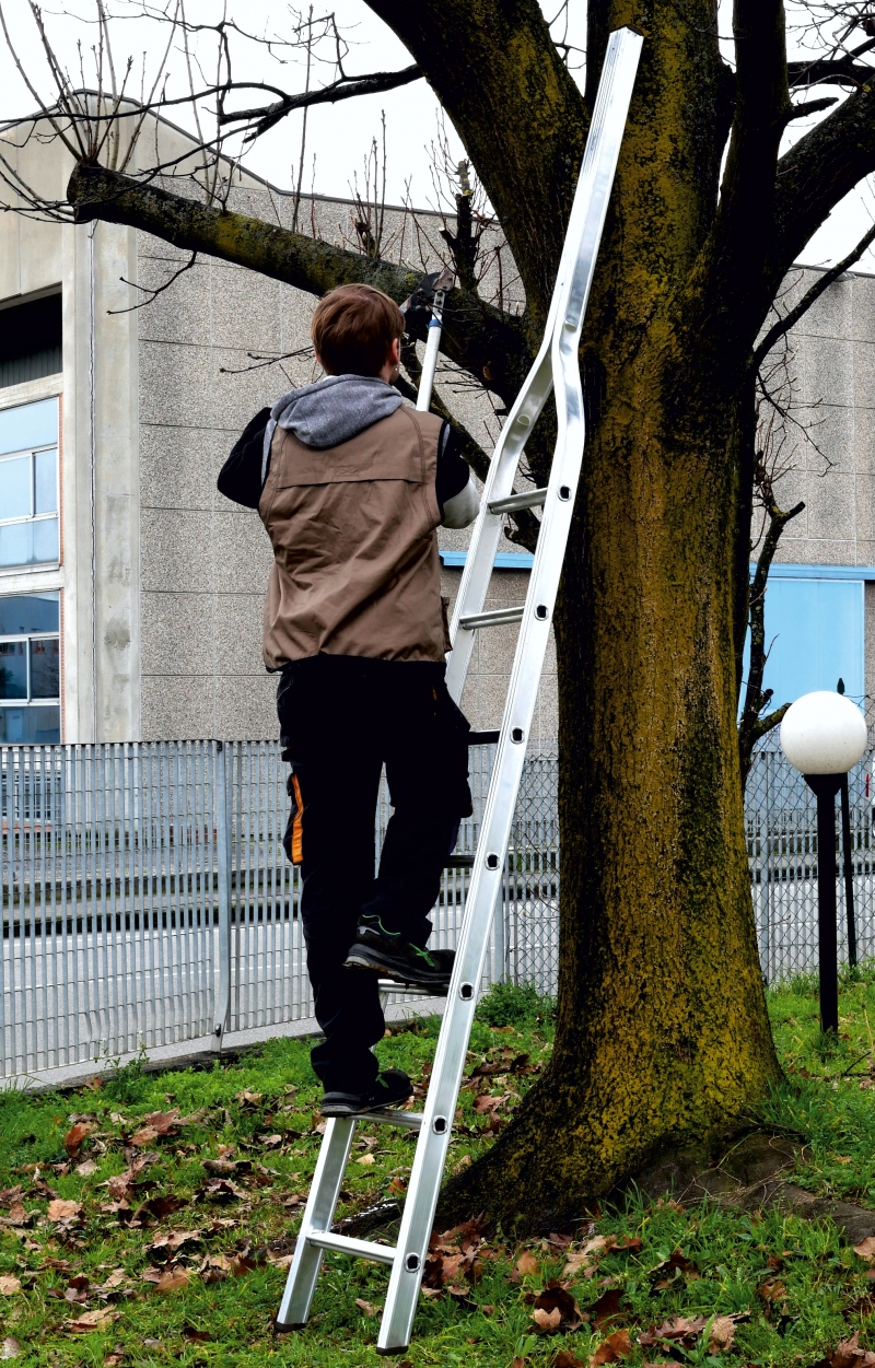 E’ realizzata con profili montanti senza spigoli per non danneggiare la pianta. E’ dotata di una prolunga terminale per un unico punto di appoggio che permette l’incastro tra i rami e consente il posizionamento della scala anche nelle condizioni più difficili dove il suolo non è pianeggiante ma presenta pendenze laterali o comunque superfici non omogenee.