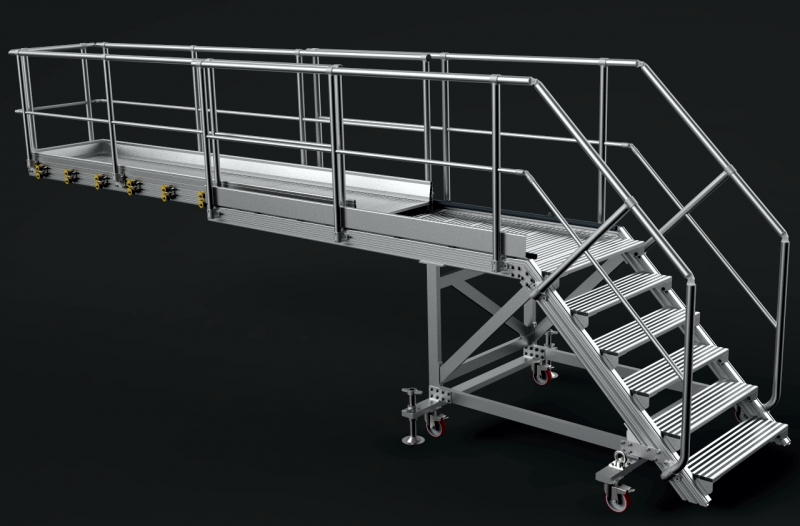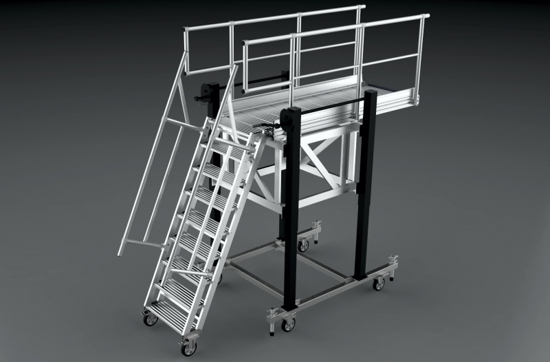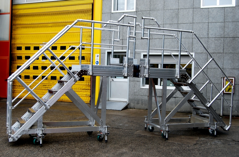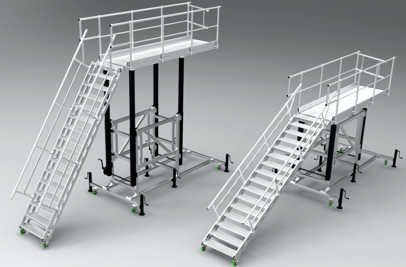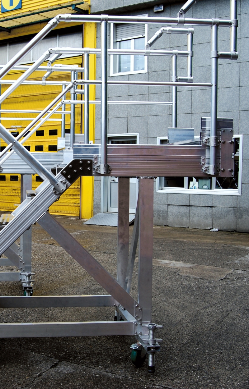 Si tratta di scale industriali realizzate appositamente per necessità particolari come eseguire lavorazioni in spazi ristretti o per raggiungere superfici di lavoro difficilmente accessibili e su macchinari da lavoro o robot di saldatura, oppure per garantire l’accesso ad impianti produttivi attraverso scale a ponte che consentono di scavalcare le linee di produzione. E’ possibile realizzare scale da fissare al macchinario o da fissare a terra secondo normativa europea EN14122 oppure scale spostabili su ruote collaudate secondo normativa europea EN131-7 anti-ribaltamento. E’ possibile inoltre realizzare scale con piattaforme a sbalzo frontale o con piattaforme a sbalzo laterale dotate di basi stabilizzatrici speciali auto-portanti, ed inoltre è possibile realizzare piattaforme con superfice in profilato di alluminio o in lamiera mandorlata di alluminio oppure in grecato drenante per fare defluire l’acqua o in grigliato di acciaio zincato a caldo che consente di evitare i depositi nevosi.